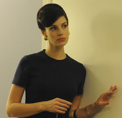 | Elle est la nouvelle femme de Don Draper, héros de la série culte Mad Men, elle remet la coupe au carré et le chic français au goût du jour, des couleurs vives, du corail ou du pastel sans oublier du noir, la belle assortit ses tenues à son vernis et évite les pantalons, elle est sublime, un truc pour les coupes simples et les cols ronds, les broches et les boucles d’oreille dorées, pourtant tout sauf ringarde elle nous redonne l’envie d’être chic tout simplement. |